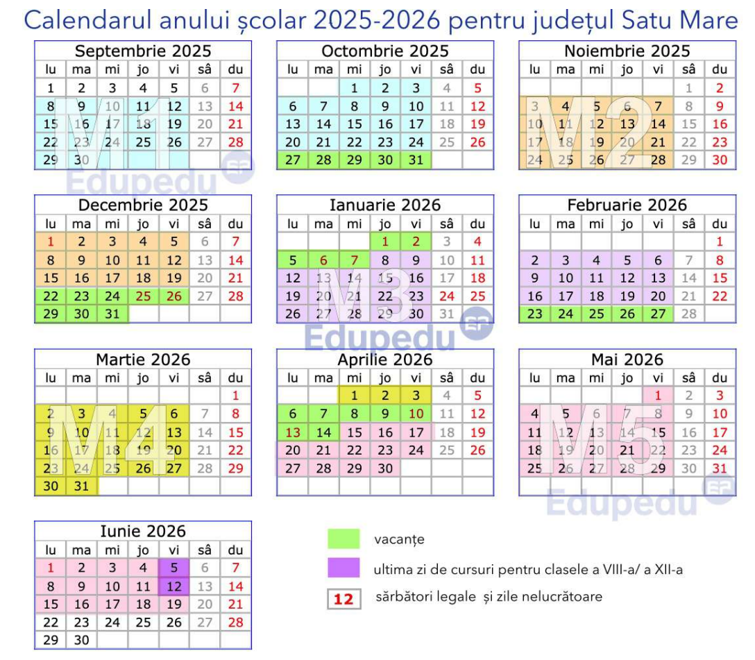 Calendarul anului scolar 2025-2026 in judetul Satu Mare